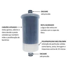 É capaz de eliminar todo e qualquer gosto ou cheiro da água, reduz a quantidade do cloro, controla a proliferação de bactérias e filtra partículas acima de 15 micras, como por exemplo, areia, barro e ferrugem. Ótimo custo-benefício, com o Refil Pro Saudê você pode economizar muito mais em galões de água mineral. Compre agora!