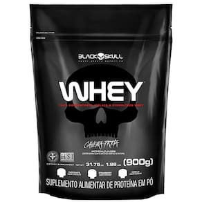 Refil Whey Chocolate 900G - BlackskullWhey da black skull usa(tm) é um produto da caveira preta series, é um suplemento alimentar que contém em sua formulação três tipos de whey protein: whey protein concentrado, whey protein isolado e whey protein hidrolisado , que são proteínas potentes que possuem tecnologias de ponta, agindo na recuperação e ganho de massa muscular . Pode ser consumido logo após o treino, durante o dia ou de acordo com o nutricionista.  Ingredientes whey :  Proteína concentrada do soro do leite, proteína isolada do soro do leite, proteína hidrolisada do soro do leite, cacau em pó, aromatizante e edulcorante sucralose. Como consumir whey  Adicionar 2 colheres de sopa (25g) de whey em 50ml de água, ou de acordo com a consistencia desejada, e consumir uma vez ao dia ou conforme orientação de um profissional especializado. Seu consumo deve estar associado a uma alimentação equilibrada e hábitos de vida saudáveis. Whey protein  Um dos suplementos mais consumidos do mundo atualmente por diversas áreas no esporte como também na nutrição clínica, derivado do soro do leite, mais conhecido como whey protein, garante proteína de alto valor biológico com objetivos de manutenção muscular, auxiliar no anabolismo e recuperação das fibras musculares de praticantes de atividades físicas em geral até em pacientes que necessitam de uma dieta enteral.  Os produtos obtidos a partir do soro são classificados conforme o seu grau de processamento, como: proteínas concentradas, isoladas e hidrolisadas. Sro - um processo de refinação que remove os contaminantes usando pressão da água para forçar as moléculas através de uma membrana semipermeável. Durante esse processo, os contaminantes são filtrados e lavados, deixando a proteína mais pura. Whey protein concentrado  Como citado acima, quando esses nutrientes são removidos, o produto é uma versão com menos impurezas e com mais soro do leite, ou seja, agora temos whey protein na forma concentrada. Whey protein concentrado contém geralmente, de 40% a 80% de proteína de alto valor biológico que fornece aminoácidos importantes para a hipertrofia muscular, facilita a construção de tecido muscular, sendo recomendada para a nutrição durante o dia.  Whey protein isolado  O whey protein isolado é um suplemento obtido a partir da filtração do whey protein concentrado, e se diferencia pela alta concentração de proteínas e sua pureza - pelo menos 90% por porção - e pela ausência de gordura e carboidratos em sua formulação, recomendada para nutrição logo após o treino. Whey protein hidrolisado  O whey protein hidrolisado é um suplemento naturalmente com a 90% de pureza no produto, pois é gerado através da quebra da proteína pela hidrólise, gerando peptídeos, sendo indicado para pessoas intolerantes à lactose ou alérgicas a proteína do leite. Alérgicos: contém derivados de leite, contém lactose. Não contem glúten.