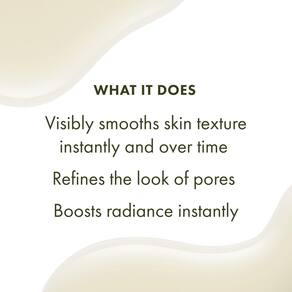 - O que faz: refina visivelmente e reduz a aparência dos poros, proporciona hidratação que aumenta a pele e aumenta o brilho para uma aparência e sensação mais suaves e volumosas.