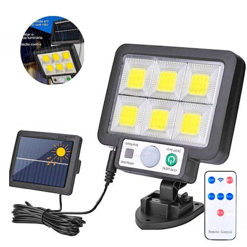 Luminária Solar com Sensor de Presença, 3 Funções e controle remoto.