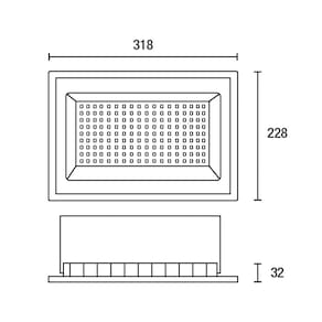 Especificações gerais do produto:Frequência: 50/60 HzDimensões AxLxP (mm): 32x210x270Cor: PretoMaterial: Alumínio e VidroGarantia: 2 anos junto ao fabricanteVoltagem: BivoltPotência: 150WGrau de Proteção: IP 66Ângulo de Abertura: 110ºEficiência Luminosa: 92 lm/WFluxo Luminoso: 13800 lúmensVida Útil: 30.000 horasDistância do Facho de Luz: 30 metrosFator de Potência: maior ou igual 0,92IRC (Índice de Reprodução de Cor): maior ou igual 80Modelo/Tecnologia: LED Embutido