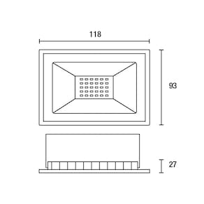 Especificações gerais do produto Frequência: 50/60 HzDimensões AxLxP (mm): 27x93x118Cor: PretoMaterial: Alumínio e VidroGarantia: 2 anos junto ao fabricanteVoltagem: BivoltPotência: 30WGrau de Proteção: IP 66Ângulo de Abertura: 110ºEficiência Luminosa: 92 lm/WFluxo Luminoso: 2760 lúmensVida Útil: 30.000 horasDistância do Facho de Luz: 10 metrosFator de Potência: maior ou igual 0,5IRC (Índice de Reprodução de Cor): maior ou igual 80Modelo/Tecnologia: LED Embutido O que acompanha o produto1 Refletor