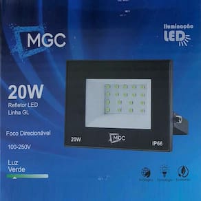 É uma escolha perfeita para você que quer decorar seu ambiente iluminado ideal para você colocar nas áreas externas de áreas jardins chácaras ou até mesmo em casa com uma iluminação de ótima qualidade e sem contar que é muito econômico economizando até 75% do que as lâmpadas convencionais. Ele é ip65 o que significa que é a prova dágua então pode deixar nas áreas externas sem a menor preocupação. Proteções exclusivas: - proteção contra excesso de corrente - proteção contra sobrecarga - vida útil duradoura A embalagem é lacrada vem com hastes e parafusos tudo pronto para ser instalado Informações técnicas Potência: 20w Cor: verde Marca: mgc Modelo: gl-w20ve Voltagem: bivolt automático 110v - 220v Vida útil: 25.000 horas Medidas: 113mm x 73mm x 23mm Peso: 200g Perguntas recorentes 1 o envio é imediato 2 qual a cor da luz Verde 3 tem Sim de 1 meses 4 o produto é bivolt Sim 127-220v 5 o meu produto chegou mas não deu certo A troca é totalmente . 6 o painel precisa de lâmpada Não este refletor já conta com leds de alta qualidade. Marca: Mgc