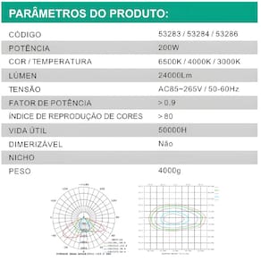 Refletor Industrial Luminária Led Holofote 6000K IP66 200W