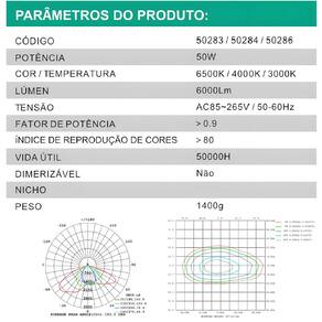 #ESPECIFICAÇÕES: Potência: 50W Cor da Luz: 6000K (Branco Frio) Lúmens: 6000lm Tensão: AC85~265V - 50/60Hz Fator de Potência: 0.9 IRC: 80 Vida Útil: 50000H Não é dimerizável Peso: 1400g Dimensões: 33cm (C) x 8cm (L) x 7,5cm (A)