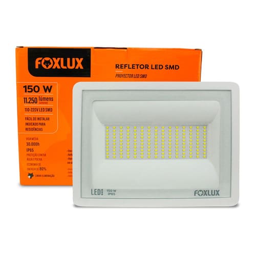 O Refletor LED 150W 6500K Branco Bivolt Foxlux é uma solução robusta e eficaz para quem precisa de iluminação intensa e de alta qualidade. Com uma potência de 150W e temperatura de cor de 6500K, este refletor oferece uma luz branca fria, ideal para áreas amplas como fachadas de edifícios, estacionamentos, galpões e áreas externas que requerem uma iluminação potente e confiável.