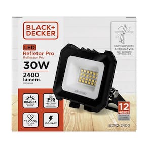 Produto: Refletor LED 30W 2.400 lúmens 6500K luz branca - Pro LED Marca: Black + Decker Voltagem: 110V/220VDescrição: O Refletor LED 30W 2.400 lúmens 6500K luz branca Pro LED da Black Decker foi projetado para oferecer iluminação de alta qualidade, este refletor LED de 30 W destaca-se pela sua impressionante capacidade luminosa de 2400 lm e uma cor de luz branca de 6500 K, proporcionando um ambiente claro e vibrante onde quer que seja instalado. Construído com resistência e durabilidade em mente, o Refletor Pro LED conta com uma robusta carcaça de alumínio e um design moderno que não só adiciona um toque de sofisticação ao seu espaço exterior como também garante uma vida útil longa de até 15.000 horas. Graças ao seu índice de proteção IP65, ele é perfeito para áreas sujeitas a intempéries, como jardins, garagens e fachadas de edifícios. Características: • Alta Luminosidade: Com um fluxo luminoso de 2400 lm, proporciona uma iluminação clara e ampla, ideal para áreas externas e internas que requerem boa visibilidade. • Eficiência Energética: Potência de 30 W, garantindo economia no consumo de energia comparado a soluções de iluminação tradicionais. • Durabilidade: Vida útil prolongada de 15.000 horas, reduzindo a necessidade de substituições frequentes. • Resistente à Água: Classificação IP65, perfeito para resistir a condições climáticas adversas, ideal para jardins, garagens e outras áreas externas. • Material de Alta Qualidade: Fabricado em alumínio resistente, oferece durabilidade e um acabamento sofisticado. • Design Moderno: O acabamento moderno e a qualidade da marca Black & Decker promovem uma aparência premium para qualquer ambiente. • Instalação Simples: Vem com conector de cabo que facilita a instalação em diversos locais sem a necessidade de grandes ajustes estruturais.Especificações: Potência: 30 WTensão: 100-240VFrequência: 50/60 HzCorrente: 240/232 mAFator de Potência: ≥ 0,5Conector: CaboTemperatura da Cor: 6500 KFluxo Luminoso: 2400 lmVida Útil: 15.000 hÂngulo de Facho: 120ºGrau de proteçâo: IP65IRC: ≥ 70Material: alumínio.