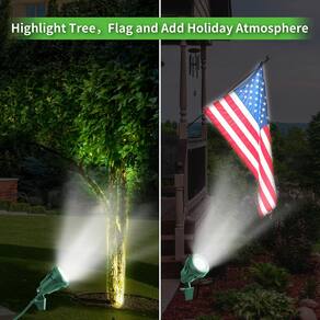 Luminária LED para ambiente externo com estaca A estaca incluída torna super fácil fixar o holofote a todos os tipos de solo, também pode suportar o uso robusto ao ar livre. Nunca se preocupe com danos causados pela umidade ou poeira, a manga de borracha apertada protegerá contra umidade, poeira e sujeira para garantir durabilidade duradoura. Especificações - Tensão AC: 120V 60Hz - Máx. Potência: 7,5W - Temperatura de cor: 5000K - Lúmens: 800LM - Vida útil: 30.000 horas A embalagem inclui: 2 holofotes LED para ambientes externos 2 estacas de solo 4 parafusos/borboletas - ?Luz do dia 5000K e lentes de 5 cores?O holofote LED 5000K oferece uma iluminação natural e vibrante com 800 lúmens, as lentes de cor vermelho/verde/azul/roxo/laranja adicionam atmosfera de férias, o suficiente para destacar decorações de Halloween/Natal, árvore, arbustos, bandeira - ?Resistente e durável?O material resistente irá protegê-lo da umidade, poeira e sujeira para garantir durabilidade duradoura, também pode suportar uso robusto ao ar livre, IP65 à prova d'água, ampla faixa de temperatura de trabalho de 20 °C a 50 °C - ?Cabo de alimentação de 1,5 m?O holofote de jardim vem com cabo de extensão SJTW 16/2C de 1,5 m, oferecendo uma maior faixa de local de instalação sem cabo de extensão extra, conectá-lo convenientemente a qualquer tomada polarizada; a estaca de aterramento para holofote garante estabilidade no solo - ?Instale em segundos?Basta usar o parafuso e a tampa da porca para conectar a estaca e conectá-la a uma tomada externa; ajuste a cabeça da luz em um ângulo adequado (máximo de 180 graus) para iluminar bandeiras, decorações de quintal e muito mais - ?Jaqueta verde? O verde de Natal combina com gramado, jardins e árvores de Natal sem distrair sua decoração ao ar livre