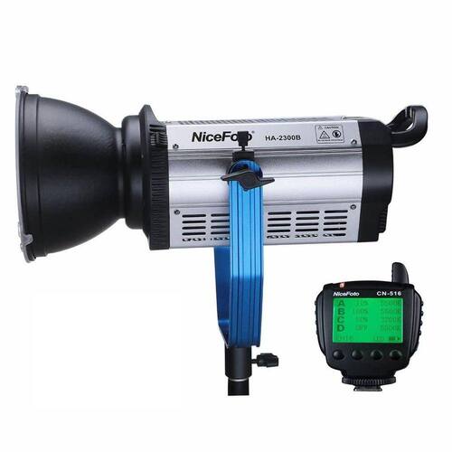 Refletor Led Luz Contínua Nicefoto Ha-2300B Cob 230W Vídeo Light 5500K Com Controle Remoto Bivolt O refletor luz continua led nicefoto ha-2300b cob 230w vídeo light 5500k com controle remoto bivolt de montagem s bowens é uma luz de iluminação de estúdio daylight possui uma chip de cob led super brilhante de 230w de iluminação 25000lm e 40000 lux e alto índice de reprodução de cores com cri =95 e tlci =95.O refletor led cob de luz continua cob e estúdio daylight cria alto brilho e fonte de luz estável para iluminação de cinema, produção de vídeo, transmissão e entrevista na tv. Acompanha um controle remoto 2.4g para controlar remotamente funções on/off, controle de brilho, canais 16 e configuração de grupo 5 grupos a/b/c/d/e .Principais características: Chip de cob led super brilhante de 230w de iluminação 25000lm, é especialmente projetado para produção profissional de vídeo, transmissão e entrevista na tv. Rendição de cor brilhante de cri =95 e tlci =95 garante uma reprodução de cores vívidas e naturais, é especialmente projetada para produção profissional de vídeo, transmissão e entrevista na tv. Com controle remoto 2,4 ghz, fotógrafos ou videomakers podem controlar o brilho da iluminação em diferentes grupos facilmente. Com duas ventoinhas silenciosas e carcaças de liga de alumínio, que podem trazer excelente desempenho de refrigeração. Possui sistema universal de montagem bowens s para vários acessórios de modelagem de iluminação, como softbox, refletor, beauty dish, entre outros. Ean: 6934440950851