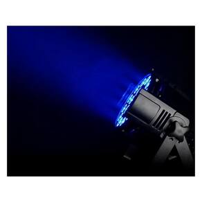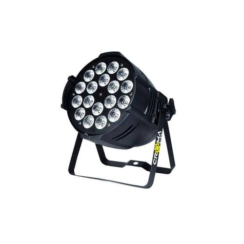 O Refletor LED Croma de 270W de potência, conta com 18 LEDS de 15W RGBWA-UV 6 em 1, maiores e mais potentes para melhor preenchimento, luminosidade e mistura de cores além do usual RGB pois possui as cores branco, âmbar e ultravioleta integrados no mesmo LED.