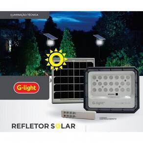 - 1 REFLETOR SOLAR LED 300W 6500K 4500lm - G-LIGHT 1 PAINEL SOLAR 1 ALÇA DE FIXAÇÃO P/ REFLETOR + 1 ALÇA DE FIXAÇÃO P/ PAINEL SOLAR 1 CONTROLE REMOTO COM BATERIAS