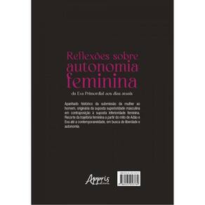 Apanhado histórico da submissão da mulher ao homem, originária da suposta superioridade masculina em contraposição à suposta inferioridade feminina. Recorte da trajetória feminina a partir do mito de Adão e Eva até a contemporaneidade, em busca de liberdade e autonomia. Marca: ARTERA EDITORA