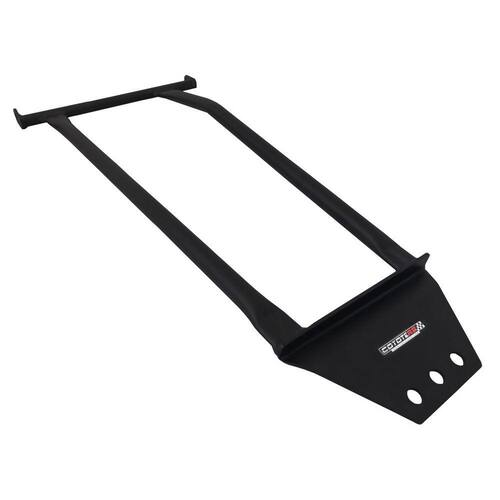 Reforço de Quadro CoyoteAcessório essencial para viagens e para carga pois fornece a moto um aumento de até 100 Kg no peso total suportado ( não é o peso do bagageiro, e sim o peso exercido sobre o quadro/chassi da moto ). Acompanha: Parafusos, Porcas, Buchas + Manual de montagem.Expecificação: Chapas de aço carbono com 5mm de espessura e pintura epoxi anti oxidante.* Disponivel apenas na cor Preto.