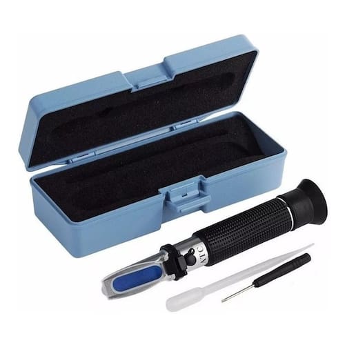Refratômetro Com Escala Dupla 2 Em 1 - Escala Para Salinidade E Gravidade Especifica (Densidade). Este Refratômetro Possui Compensação Automática De Temperatura Atc De 10° A 30° Celsius, Proporcionando Uma Análise De Salinidade E Densidade De Seu Aquário De Forma Rápida E 100% Confiável. Este Aparelho É Muito Mais Preciso Que Um Densímetro Oferecendo Muito Mais Confiabilidade Nos Resultados. Especificações:- Fácil Calibração (Já Vai Calibrado De Fábrica)- Ajuste De Foco- Estrutura em alumínio- Revestimento De Borracha Dados Técnicos:- Modelo Salinidade- Marca RZ 118 Contec- Escala De 0 A 100% Para Salinidade E Densidade Específica De 1000 A 1170.- Atc: Compensação Automática De Temperatura 10°C A 30°C- Comprimento: 150 Mm- Peso: 240 Gramas Conteudo Da Embalagem:- 1 Refratômetro Calibrado De Fabrica- 1 Chave De Ajuste- 1 Pipeta Pasteur- 1 Manual De Instruções- 1 Estojo- 1 Flanela Marca: RZ CONTEC