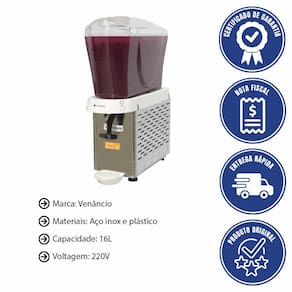 - A Refresqueira Venâncio em inox com 1 reservatório de 16L é a solução perfeita para quem busca praticidade e eficiência.