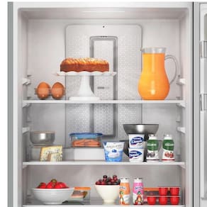 Características Adicionais: Consumo Aproximado de Energia: 46.5 kWh Eficiência Energética: A+++ Capacidade Total: Média - 375 a 450 Litros Recipiente para guardar gelo Gavetas: 3 Gavetas Porta ovos Alarme de porta aberta Capacidade Geladeira: 311,0 Litros Capacidade Freezer: 136,0 Litros Tipo de Degelo: Frost Free Display: Touch Screen Controle de temperatura Mostrador frontal de temperatura Painel Eletrônico: Externo Tipo Refrigerador: Inverse (Freezer embaixo) Quantidade de níveis de temperatura: 5 Filtro antiodor Acabamento interno