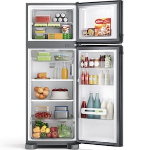 MARCA: Consul Nome do produto: Geladeira Consul Frost Free Duplex 340 litros Evox com Prateleiras Altura Flex Descricao curta: A Geladeira Consul Frost Free 340 litros nao precisa descongelar nunca. Possui prateleiras com Altura Flex que permite ate 8 niveis de altura e funcao Turbo. Caracteristicas Basicas: Capacidade Total Liquida -L-: 340 Tipo de Degelo: Frost Free Numero de Portas: 2 Metodo de Preparo: 1 Posicao do Freezer: Em cima Painel de Controle: Interno Plugue e Tomada: 10 A Principais Diferenciais: Altura Flex Com o exclusivo sistema de regulagem, as prateleiras podem ser ajustadas em ate 8 niveis de altura para acomodar itens de diversos tamanhos sem precisar tira-los da geladeira. Funcao Turbo Resfrie sua geladeira muito mais rapido. Mais facilidade para quando ela esta cheia e para ocasioes especiais. Frost Free Sabe quando chega a hora de limpar a geladeira e voce precisa esperar ela descongelar inteira? Entao, com uma geladeira Frost Free nada disso acontece! Isso por que ela possui uma tecnologia avancada que faz com que nunca se forme gelo nas paredes do congelador. Ou seja: voce nao precisa descongelar nunca. Gavetao Hortifruti Deixa suas frutas, verduras e legumes organizados, mantendo-os fresquinhos. Freezer com alta capacidade Mais espaco e organizacao para os congelados.