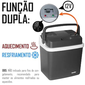 NÃO indicado para fins de congelamento, servindo apenas para manter os alimentos resfriados ou aquecidos. Para garantir melhor efeito de refrigeração em um curto espaço de tempo, deve-se colocar os alimentos ou bebidas congelados previamente.