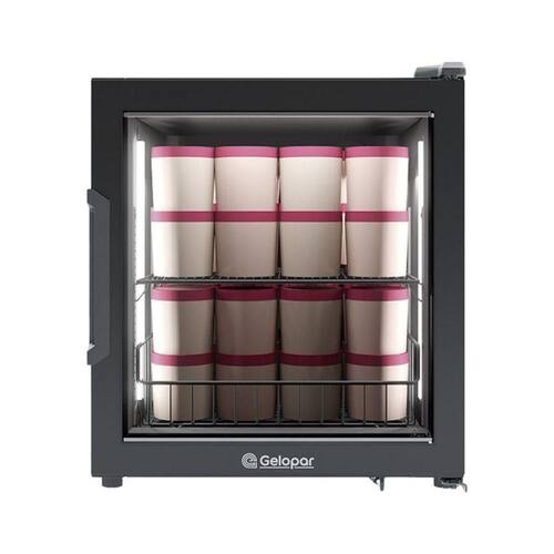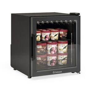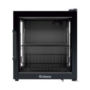 Refrigerador Bancada 85L GFB75CB Gelopar. Ideal para bares, lanchonetes, padarias, cafeterias e similares. Conservação e exposição de produtos congelados e resfriados. Temperatura: Congelados -15 a -20C/ Resfriados 0 a +7C. Refrigeração: Estática com serpentina. Degelo: Manual. Controle de Temperatura: Termostato eletrônico. Iluminação interna LED. Porta de vidro triplo temperado baixo emissivo, com sistema de aquecimento, serigrafia e perfil slim. Prateleiras aramadas: 1 nível + cesto aramado. Revestimento: Interno e externo em aço pré-pintado preto. Vidros sujeitos a condensação da umidade do ar. PORTAS: 1. FREQUÊNCIA: 50/60Hz. CAPACIDADE: 85 litros. CONSUMO: 4,96kWh/dia. PESO: 38,5kg. DIMENSÕES(CxAxP): 55x62x63,5cm. Equipamento certificado conforme Portaria Inmetro n 148/2022. Refrigerador Bancada 85L GFB75CB Gelopar é na Atau.
