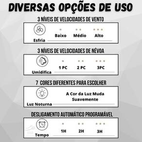 O Mini Climatizador Ventilador Umidificador opera silenciosamente, proporcionando tranquilidade em qualquer ambiente. Seja em casa, no trabalho ou em momentos de lazer, você terá um ambiente fresco, personalizado e revigorante.