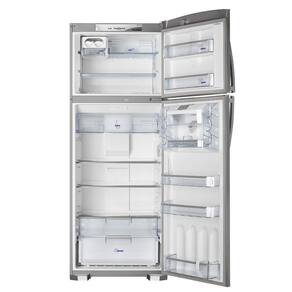 O freezer tem o espaço congelamento rápido, neste compartimento predominam temperaturas menores do que no restante da área do freezer, ideal para o congelamento rápido de alimentos, e gaveta para gelo, onde você consegue tirar facilmente os cubos de gelo, basta girar os manípulos da fôrma várias vezes para a direita.