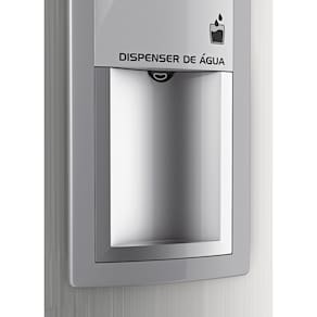 Os cubos soltam-se e caem dentro do recipiente para cubos de gelo. E mais, vem com dispenser de água que permite a retirada de água gelada sem ter que abrir a porta do refrigerador, para se servir basta pressionar um copo contra o flap acionador, e a água será servida.