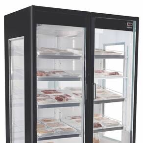 O Refrigerador Expositor Vertical para Carnes Frilux 1200 Litros Preto 2 Portas de Vidro Aquecido 220V RF-006-C é a solução ideal para a conservação e exibição de carnes embaladas e outros produtos refrigerados em grande escala. Com uma ampla capacidade de 1200 litros e duas portas de vidro duplo aquecido, este expositor mantém a visibilidade clara dos produtos enquanto evita o acúmulo de condensação, garantindo uma apresentação impecável. O sistema de refrigeração por ar forçado, aliado ao controlador digital de série, assegura uma temperatura interna ajustável entre -5C e +5C, adequada para diversas necessidades de conservação. As prateleiras reguláveis e inclináveis oferecem flexibilidade na organização dos produtos, enquanto a iluminação interna de LED na vertical destaca os itens de maneira eficiente e econômica. Com o fechamento automático das portas e os pés reguláveis, este refrigerador combina praticidade e elegância, tornando-se uma excelente escolha para supermercados, açougues e grandes restaurantes.
