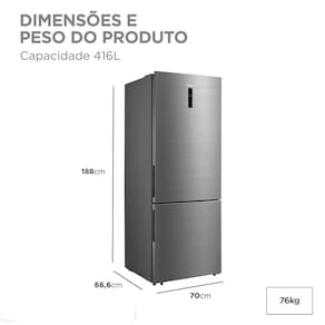 A Geladeira Frost Free Inverse 416L Inverter cor Inox Midea entrega estilo e praticidade para o dia a dia. Com o refrigerador na parte superior, você tem tudo que precisa sempre à vista. Sua tecnologia Inverter proporciona resfriamento rápido e garante a estabilidade da temperatura, preservando os alimentos por mais tempo. Além disso, contribui para uma maior economia de energia e baixo nível de ruído.A geladeira também traz a comodidade do Flexi-Volt, e seu Painel Touch aciona diversas funções, como o controle de temperatura grau a grau, com apenas um toque. Já a função Turbo Freezer atinge temperaturas mais baixas em menos tempo, enquanto o Modo Compras alcança rapidamente temperaturas mais baixas no refrigerador. Por fim, ela ainda possui classificação energética A+++, que garante até 30% de economia de energia em comparação ao padrão A, segundo o Inmetro.