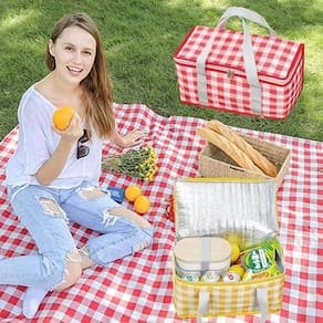 Conjunto de cesta de piquenique com bolsa térmica isolada para manter os alimentos quentes, frios ou frescos!