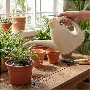 Resistente, leve e lindo: regador de plástico com capacidade para 2 litros, ideal para pequenos cultivos. Vai deixar as suas tarefas domésticas mais agradáveis e o seu jardim ainda mais bonito: design moderno, alinhado com a decoração da sua casa.