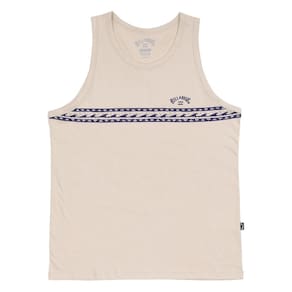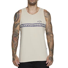 Regata Billabong feita em meia malha penteada de algodão fio 30.1, modelagem Core fit, estampa aplicada no peito e etiquetas personalizadas.