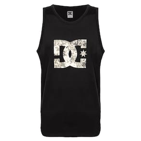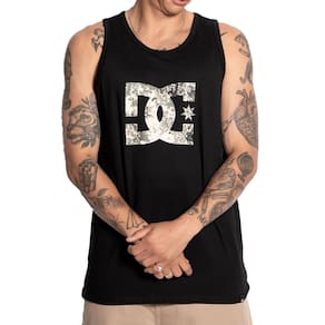 Regata Dc Shoes feita em meia malha 30.1, modelagem standard fit, estampa frontal e etiquetas personalizadas.