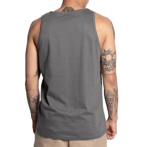 Regata Dc Shoes feita em meia malha 30.1, modelagem standard fit, estampa frontal e etiquetas personalizadas.