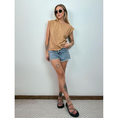 A regata Ombro Caído já é uma tendência fashionista mais que presente em nosso guarda-roupa. Neste modelo ela é desenvolvida em malha de algodão, um tecido de toque suave e ótima resistência. Exibe gola arredondada e mangas com texturizado. Despojada e versátil. Vale apostar!