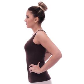Regata feminina decote redondo, marrom, cor clássica, em tecido LIGHT CO2 biodegradável (fio AMNI SOUL ECO, o primeiro fio de nylon biodegradável do mundo), com fator de proteção solar 50FPS+ UVA e UVB.