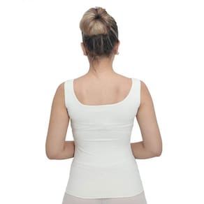 Regata feminina decote redondo, cor palha clássica, em tecido LIGHT CO2 biodegradável (fio AMNI SOUL ECO, o primeiro fio de nylon biodegradável do mundo), com fator de proteção solar 50FPS+ UVA e UVB.
