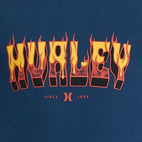 Regata Hurley feita em meia malha 30.1, gola rebatida, estampa localizada base d'agua e etiqueta clips ONE&ONLY na barra.
