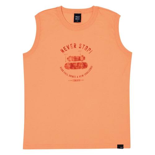 Aposta ideal para a estação, mantendo seu fashionista em livre movimento para curtir o passeio com os amigos. Regata confeccionada em meia malha na cor laranja, conta com decote redondo e estampa frontal. Tradução: "nunca pare! Cada queda traz uma nova chance. Mas mano faça a escolha certa!".