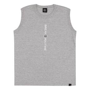 Regatas são as peças chaves para os dias mais quentes, aposte! Confeccionada em meia malha na cor mescla cinza, possuí gola reforçada, modelagem com ombros mais largos, caimento soltinho e estampa frontal com escrita "quebre a rotina".