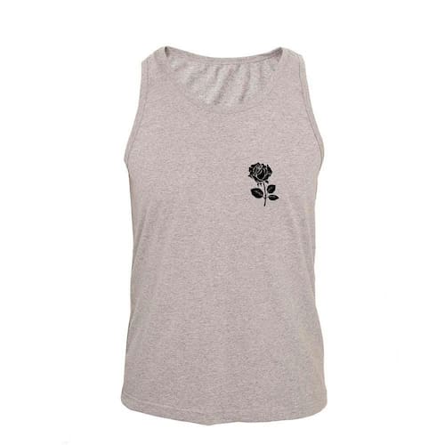 Regata Masculina Algodão Flor Estampada Verão Moderna - Cinza - M