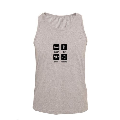 Regata Masculina Algodão Sleep Eat Train Repeat Básica - Cinza - P