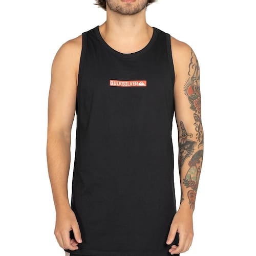 Regata Quiksilver feita em modelagem regular fit, meia malha, estampa na frente e etiqueta da marca aplicada na bainha do lado esquerdo de quem veste.
