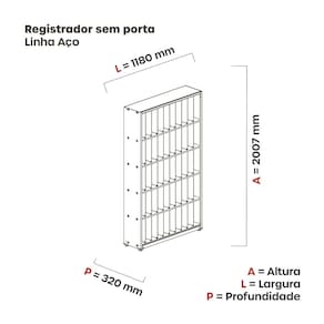 Registrador Pandin de Aço com portas, ideal para guardar pastas AZ para organização de escritório e ambientes corporativos, pintura eletrostática, diversas cores para combinar com seu ambiente, qualidade total. Ambiente Principal: Escritório Complexidade da Montagem: Média: pode ser montado por mais de uma pessoa e/ou necessite de maior conhecimento para montagem Cor: Cinza Cor do Produto: Cinza Cor Interna: Cinza Escala de Brilho: Semi-Fosco Itens Inclusos: Um Registrador Manual de Montagem e Instalação: https://cdn2.madeiramadeira.com.br/prd/pandin/2028938-1086%20-%201087%20%20-%20Registrador.pdf Material dos Pés: Polipropileno Material Principal: Aço Necessita Montagem: Sim Origem do Produto: Nacional Peso: 39,79 kg Possui Espelho: Não Possui Pés: 04 Possui Portas: Não Possui Prateleiras: Não Recomendações de Uso, Manutenção e Limpeza: Limpeza a seco e no interior, água com uma toalha para úmida; Sapatas Niveladoras: Sim Sistema de Montagem: Parafuso Suporta Até (kg): 30 kg