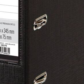 A Pasta Registradora AZ Dac Ofício Lombo 7,5 cm Preto possui o tamanho ofício, medindo 34,5 cm x 28,5 cm.