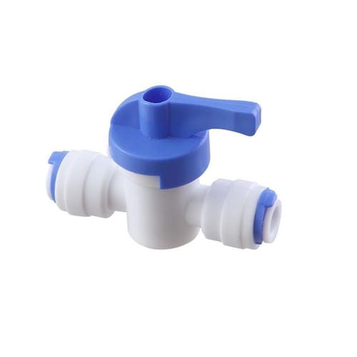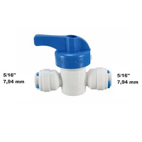 Registro em linha para mangueira de 5/16'' (7,94 mm) recomendado para purificadores de água que possuem entrada de mangueira 5/16'', solução para locais onde o ponto de água não possui registro fixo para o bebedouro ou purificador. Muito facil instalação, facilita a limpeza de seu purificador no momento que precisar fechar a água de entrada, pode ser usado também como redutor de Vasão devido ao seu modo de Regulagem.