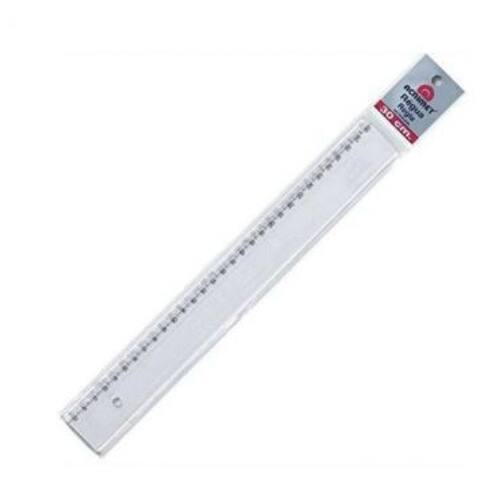 Régua em poliestireno, com escala de 30 cm gravada por transferência de imagem, garantindo alta precisão. Possui dois micro ressaltos na face que entra em contato com o papel para evitar o desgaste da escala. Cantos arredondados para maior segurança. Produto certificado pelo INMETRO.