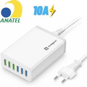 Regua 6x usb carregador tomada hub 10a turbo rapido Facilite seu dia a dia com uma estação carregadora de 6 portas Acompanha o carregdor de 6 usb e o cabo de energia Obersevção: Produto homologado pela anatel10019-22-11410 - carregador de parede multi portas, de bolso é leve e compacto, designado para carregar vários dispositivos usb ao mesmo tempo.- para um melhor uso só utilize cabos certificados.- ampla voltagem ac 100-240v compátivel em todo o mundo. É ótimo para viajar com vários dispositivos.- testado e aprovado.- o design compacto permite que você mantenha seus dispositivos e cabos organizados durante o carregamento.- se precisar de porta extra para conectar dispositivos usb adicionais , ele suporta também: scaners , impressoras, camera digital , gravadores, microfones, teclados, mp3 players e muito mais.- ampla compatibilidade : com 10a ele carrega todos os tipos de telefones , tablets e outros dispositivos sumultaneamente.- um carregador extremamente rápido que estabiliza a energia utilizando tecnologia de ponta. Super potenteDesign modernoCompactoMáxima proteção : contra curtos e super aquecimento.Comprimento do cabo de energia : 1,5 metro. Entradas: 100-240v - 50/60hzSaidas: 5v = 10a Transforme sua tomada em uma estação de carregamento usb em 6 portas, permitindo que você e sua familia ou amigos carreguem simultaneamente seus dispositivos. O kit acompanha: 1 fonte de 6 portas usb1 cabo para conectar a tomada