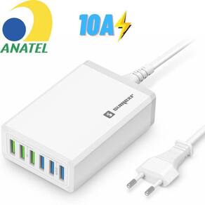 Regua 6x usb carregador tomada hub 10a turbo rapido Facilite seu dia a dia com uma estação carregadora de 6 portas Acompanha o carregdor de 6 usb e o cabo de energia Obersevção: Produto homologado pela anatel10019-22-11410 - carregador de parede multi portas, de bolso é leve e compacto, designado para carregar vários dispositivos usb ao mesmo tempo.- para um melhor uso só utilize cabos certificados.- ampla voltagem ac 100-240v compátivel em todo o mundo. É ótimo para viajar com vários dispositivos.- testado e aprovado.- o design compacto permite que você mantenha seus dispositivos e cabos organizados durante o carregamento.- se precisar de porta extra para conectar dispositivos usb adicionais , ele suporta também: scaners , impressoras, camera digital , gravadores, microfones, teclados, mp3 players e muito mais.- ampla compatibilidade : com 10a ele carrega todos os tipos de telefones , tablets e outros dispositivos sumultaneamente.- um carregador extremamente rápido que estabiliza a energia utilizando tecnologia de ponta. Super potenteDesign modernoCompactoMáxima proteção : contra curtos e super aquecimento.Comprimento do cabo de energia : 1,5 metro. Entradas: 100-240v - 50/60hzSaidas: 5v = 10a Transforme sua tomada em uma estação de carregamento usb em 6 portas, permitindo que você e sua familia ou amigos carreguem simultaneamente seus dispositivos. O kit acompanha: 1 fonte de 6 portas usb1 cabo para conectar a tomada