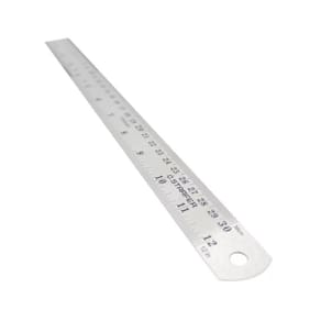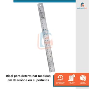 A Régua Aço é ideal para determinar medidas em desenhos ou superfícies, medição em escala de milímetros e polegadas, utilizada em vários segmentos, como: costura e patchwork, desenhos, marcenaria, construção civil, indústrias, entre outros. Produzida em aço inox, oferece alta resistência, possui tabela de conversão de unidades no verso e excelente para trabalhos de corte com estilete. CARACTERÍSTICAS TÉCNICAS:Material: Aço inoxMedidas: 30cm - 12 comprimento x 25mm largura x 0,7mm espessura Graduação: Milímetros e polegadasGrau de circunferência: 90Tipo de régua geométrica: ProjetistaMarca: StarferRef.: 11995640