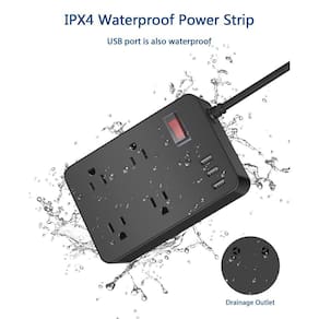 RESISTENTE À ÁGUA E À PROVA DE RESPINGOS: Classificado como IPX4, este filtro elétrico de várias tomadas à prova de choque funciona bem em condições úmidas e chuvosas. Use-o com segurança em um banheiro, perto de uma piscina ou chuveiro ao ar livre, em seu deck ou pátio, enquanto acampa ou para acender suas luzes de Natal.